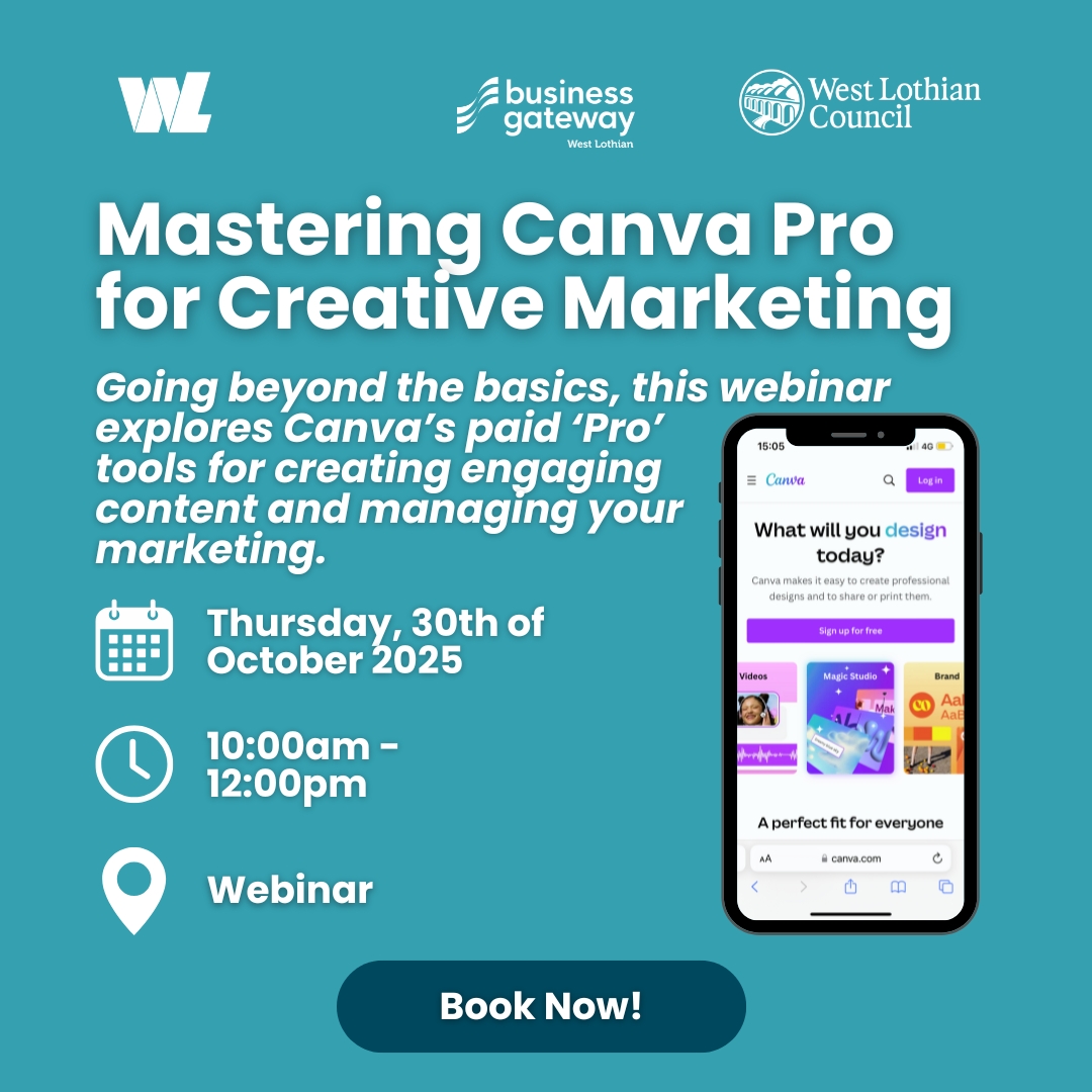 This webinar expands on basic knowledge of Canva and is perfect for anyone who already has experience using Canva. If you’re new to Canva, we recommend attending the Business Gateway “Introduction to Canva” national webinar first to practice the basics.