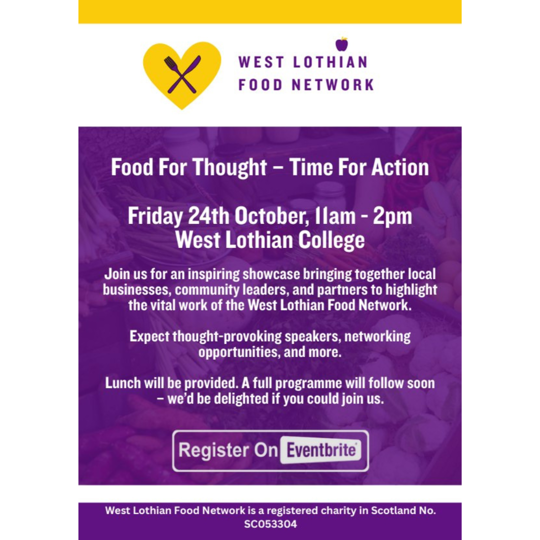 The event will highlight the Food Network’s work across West Lothian, its impact on local communities and families, and explore opportunities for collaboration between businesses, partners, and community leaders. Attending businesses will have the opportunity to connect with local organisations, explore potential partnerships, and share insights on supporting food security and community wellbeing.
