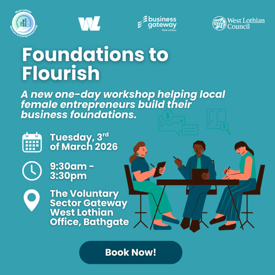 Join us for our brand-new workshop exclusively for West Lothian-based female entrepreneurs that are within their first 6 months of trading and want to build their business foundations.