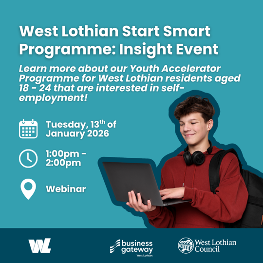 Join us on Tuesday, the 13th of January, to learn more about our exciting new Youth Accelerator Programme for West Lothian residents aged 18-24 that are interested in self-employment.