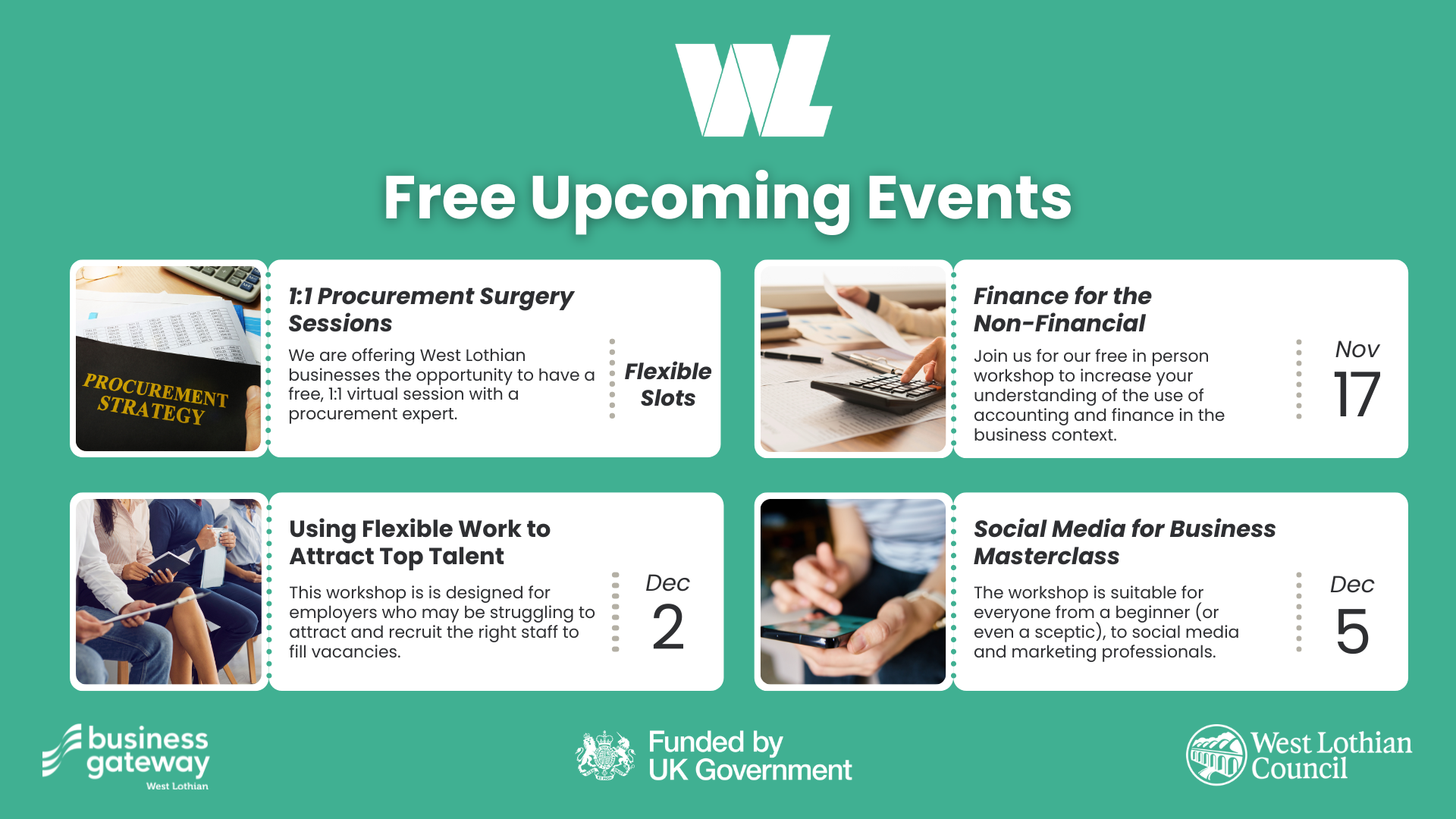 Welcome to the November edition of the Invest in West Lothian newsletter! In our newsletter, we will be sharing the latest news stories, funding opportunities, and events for businesses in West Lothian.