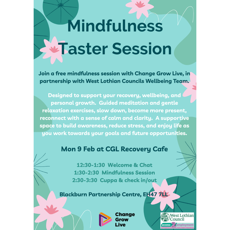 Join a free mindfulness session with Change Grow Live, in partnership with West Lothian Council's Wellbeing Team.