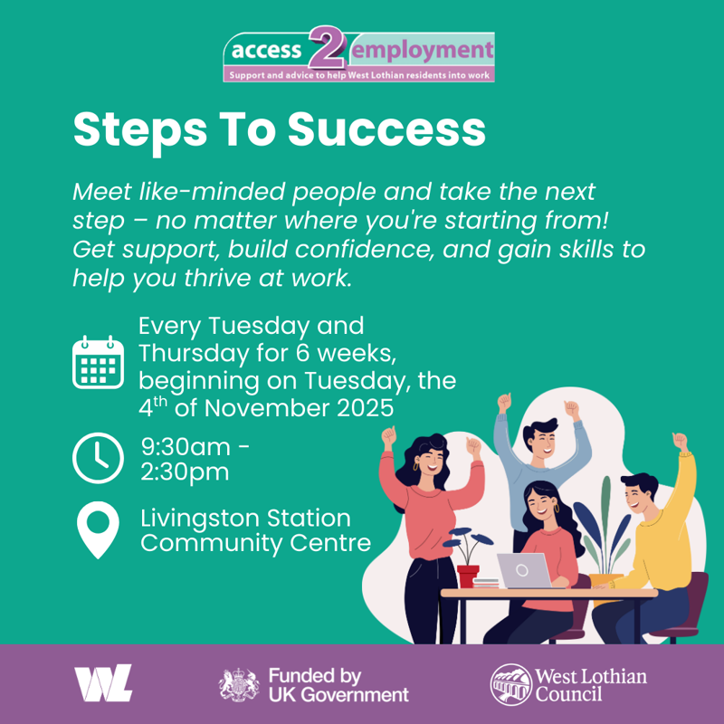 Are you looking for work or thinking about a career change? West Lothian Council’s Access2Employment team is delighted to be hosting a free jobs fair at Howden Park, Livingston, on Wednesday 8th October.