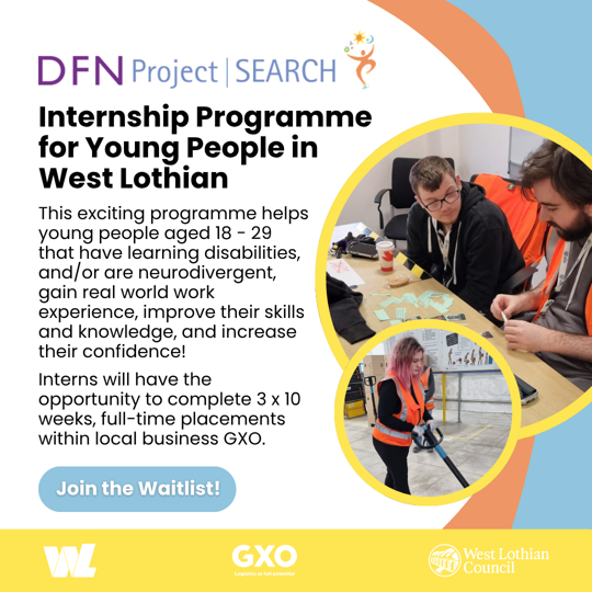 DFN Project SEARCH is an internationally recognised, work-focused supported internship programme for young people that are based in West Lothian and are aged 18 - 29 with learning disabilities and/or who are neurodivergent. The programme actively prepares participants for the world of work and supports their transition into full-time, paid employment.